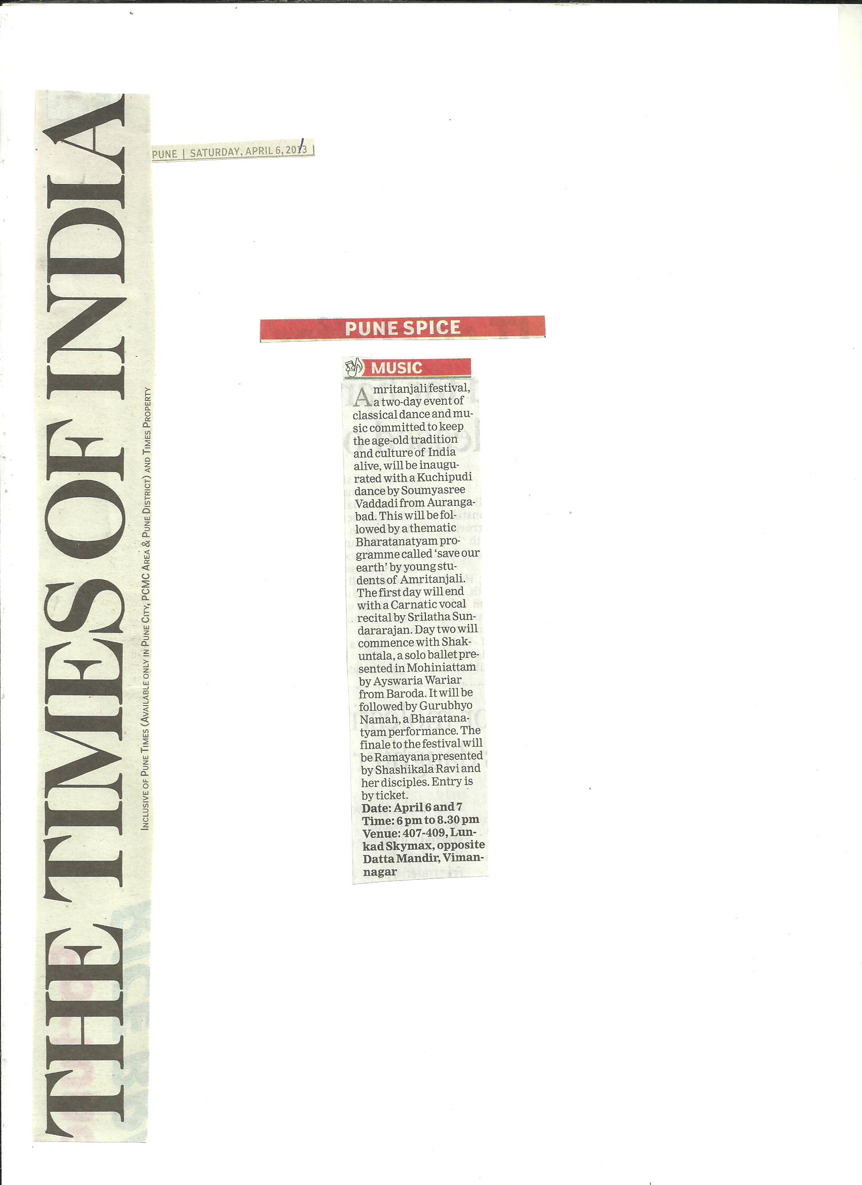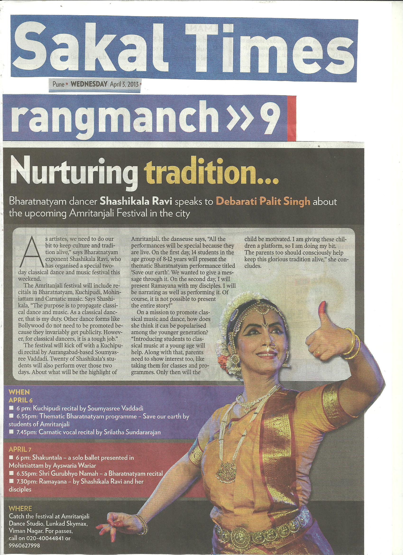 Newspaper Reviews of Amritanjali festival 2013
