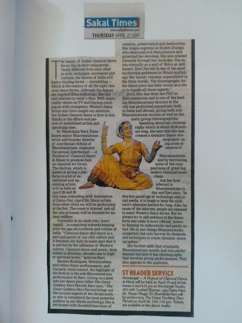 Newspaper Reviews of Amritanjali festival 2017